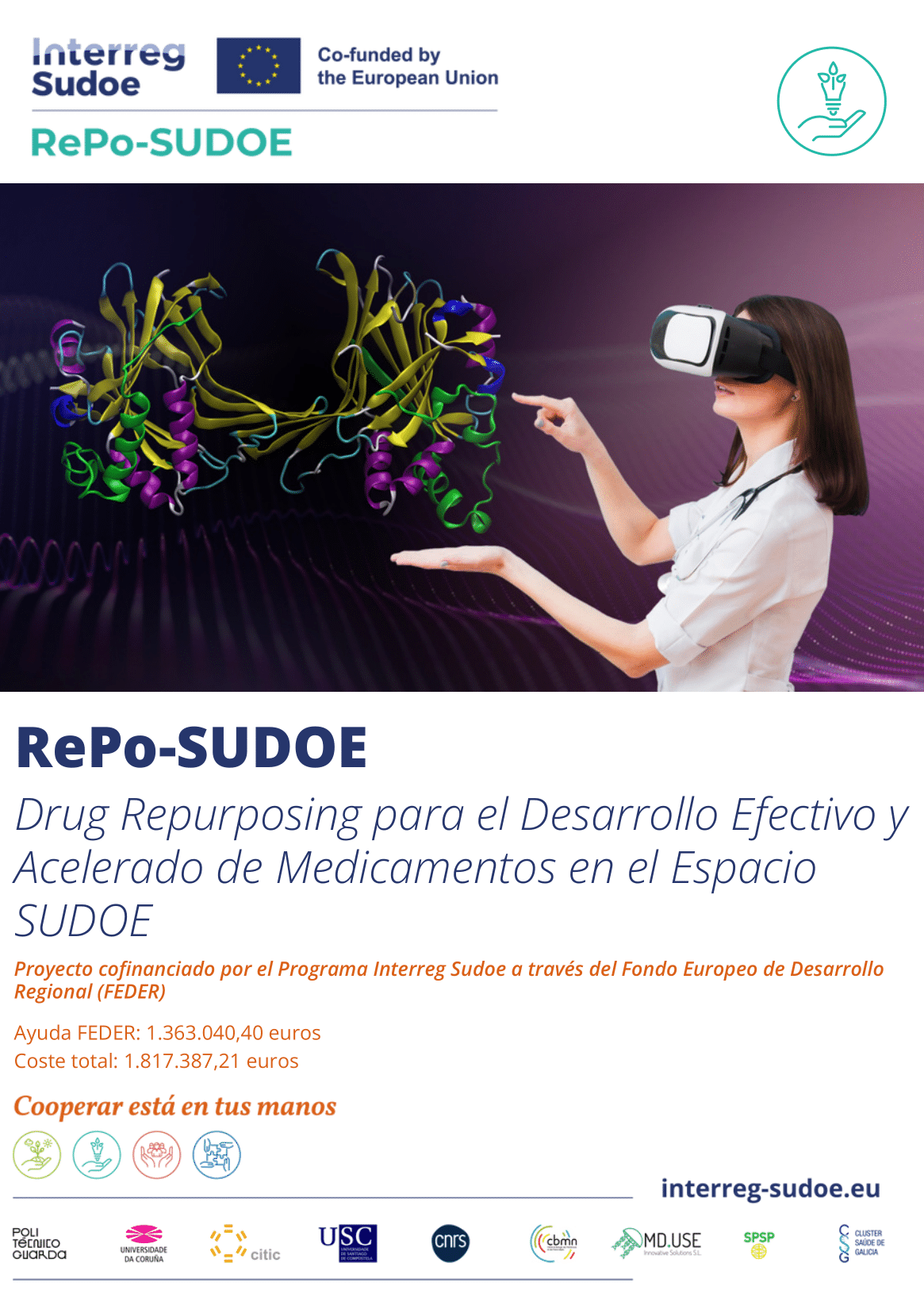 This project brings together, for the first time, partners from different SUDOE regions and different areas of the drug development value chain, in a common drug repurposing project. The RePo-SUDOE will put at the service of the scientific information society of easy consultation and open access, and decisive visualisation technologies for the affirmation of the area of drug repurposing in the SUDOE space.